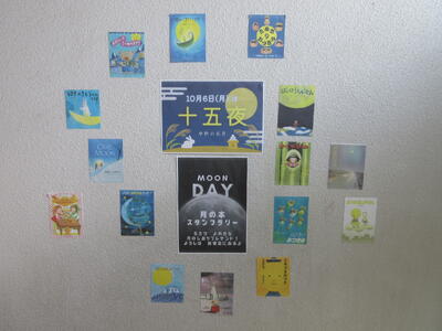 中秋の名月にちなんで、学校司書さんが「月の本スタンプラリー」を実施しています。