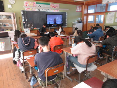 1月14日の5時間目に6年生がオンラインで小中座談会を実施しました。