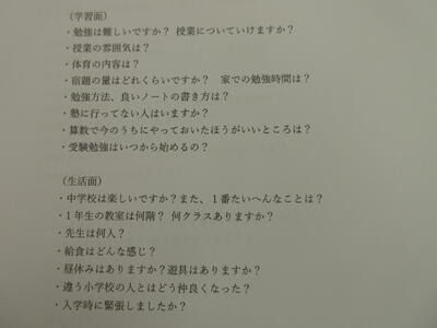 小中座談会とは、6年生が、中学校生活について不安に思っていることに対して、中学生にこたえてもらいます。