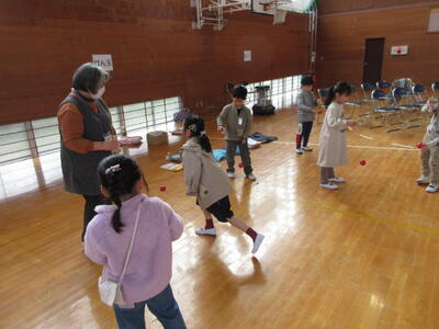 本日、2時間目3時間目で1年生が昔の遊び体験をしました。